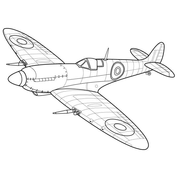 How to Draw Supermarine Spitfire Fighter Aircraft - Drawing and Coloring WW2 Plane - Wwii Spitfire Coloring Pages
